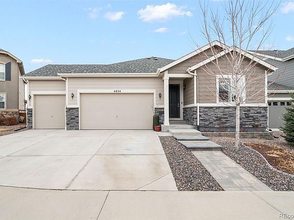 OPEN HOUSE SUNDAY, MARCH 17 FROM 11-2. Welcome to 6824 Leilani Lane, nestled at the end of a quiet cul-de-sac in Cobblestone Ranch. This inviting home strikes the perfect balance of comfort and convenience. Upon entering you will be beckoned into the gorgeous kitchen and open layout by the expansive views and airy ambiance created by the tall ceilings (and no backyard neighbors). The kitchen has beautiful granite countertops, stainless appliances, plenty of storage and will be a dream to cook in. The main level features a large Primary Bedroom Suite with backyard views and a zero entry shower in the primary bath. 2 more bedrooms, a full bath and a centrally located laundry room complete the main level living area. The spacious finished walk-out basement expands the living space, offering 2 additional bedrooms, a 3/4 bath, and a handy kitchen area, perfect for entertaining or accommodating guests – and the pool table is included. The basement also offers a sizable storage area, built in work bench and includes the water softener and whole house water filter. Moving on to the finished and insulated 3 car garage. This area provides another versatile space that can be tailored to fit your needs, whether it's a workshop, extra storage, or a creative haven. Currently there is an accessible ramp in the garage which can be left as is or will be removed by the seller depending on buyer’s desire. Whether you're enjoying the views from your patio or deck, unwinding on the main level or entertaining in the finished basement, this home is designed to complement your lifestyle in every way. Don't miss the chance to explore the Cobblestone Ranch community amenities which include a pool, tennis courts, pickleball courts, miles of walking trails, playgrounds and parks. Schedule a showing today and discover the endless possibilities waiting for you in this wonderful home! OPEN HOUSES – SUNDAY, MARCH 17 FROM 11-2 AND SATURDAY, MARCH 23 FROM 12-3.