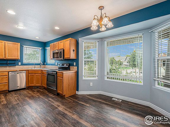 This home is a must see! The vaulted ceilings and open floorplan offer great natural light. Primary bedroom includes walk in closet and full 5 piece bath. The fully finished basement adds plenty of space to spread out and is great for movies/entertaing and has private space for guests! Nicely landscaped backyard with mature trees is fully fenced. Great neighborhood! Just one block from the park and a short drive to I-25 makes for a quick 10 minute commute to Fort Collins. Come see this one before it's gone!