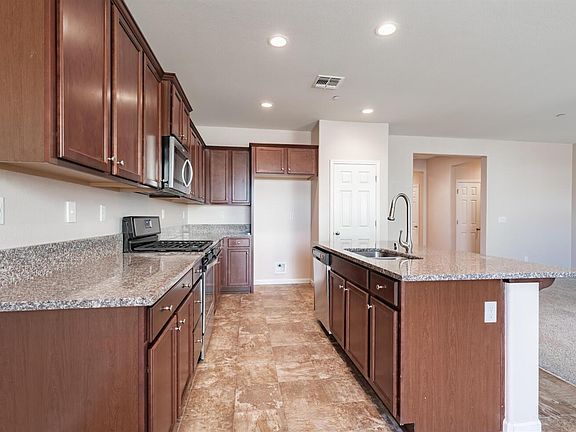 The adorable and classic, single story floor plan by Century Communities at Tapestry. This tile roofed home offers 3 Br/2 Bath with 9' ceilings you are welcomed into a sunny-filled room with an abundance of natural light, is perfect home for entertaining. Counter tops are garnished with granite and backsplash. Spacious island consists of a double-basin stainless steel sink, disposal and Energy Star dishwasher. Self-cleaning oven, 4 burner stove with hidden vent, and built in microwave, ceiling fans, owned solar are also included. Owner's suite has a generous size walk in closet with wood shelving, dual vanities, oversized shower, and separate water closet with door. Distinctive features with all the comforts of energy efficiency including, Dual Pane Windows and Tank-less Water Heater and much more. Call your favorite Realtor today to schedule your showing.