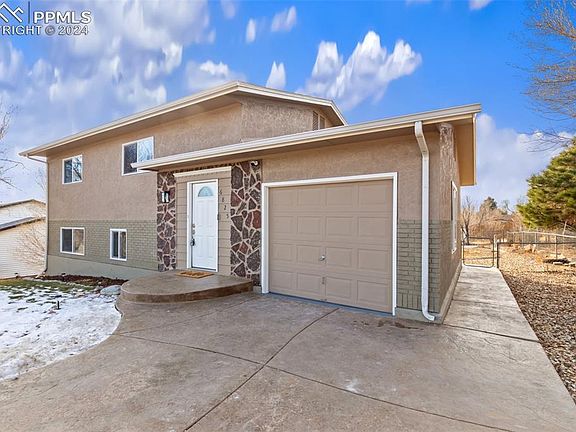 Discover the Perfect Blend of Style and Functionality in This Beautifully Remodeled Bi-Level Home This beautifully updated bi-level home features 4 bedrooms, 2 1/2 bathrooms, and a one-car garage. Upon entering the home, step up to the main level, which boasts a large living room, a nicely sized kitchen, and two bedrooms. The primary bedroom includes a private 3/4 bathroom, while a half bathroom is conveniently located off the hallway. The kitchen is a masterpiece, showcasing a stunning custom-tiled backsplash and newer appliances. The spacious living room provides the perfect setting for intimate family evenings or gatherings with friends. Heading down to the lower level, you'll find two additional bedrooms, a full bathroom, and a family room with a walkout to a huge stamped concrete patio—perfect for outdoor entertaining. The home also features newer stucco, a stamped concrete driveway, and a walkway leading to the backyard. Additionally, it includes a newer furnace, air conditioning, and an updated electrical panel for enhanced comfort and efficiency. Move-in ready and conveniently located near Perterson Air force base, shopping, restaurants, movie theaters, parks, walking trails, and hospitals. Don’t miss your chance—set up your showing today!