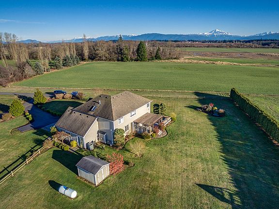 Outstanding 4br/2.5ba 2791sf custom Craftsman designed home on a flat 1+ acre lot with amazing Mt. Baker views. Located just a few minutes east of I-5 on a private road surrounded by a small cluster of custom homes. Plenty of room to add a shop or just use it for your own soccer field! Large open living and dining areas along with very nice kitchen with great room attached for entertaining. Southerly exposed deck perfect for those long wonderful summer days. Flat, one acre lot w/room to roam.