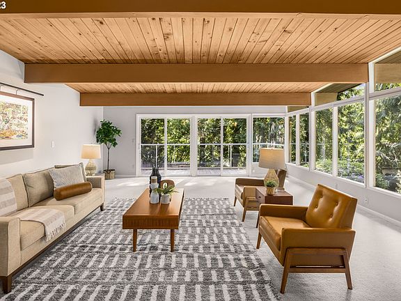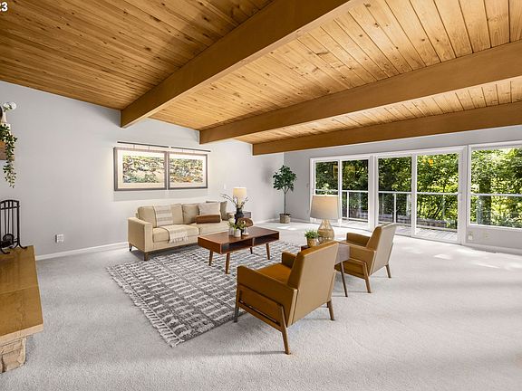 Truly special Raleighwood post and beam home surrounded by mature cedar trees and beautiful landscaping. Large floor-to-ceiling windows in the living room fill the space with natural light while the exposed wood beams bring in warmth. Enjoy the gourmet kitchen that features a built-in gas cooktop, large island, tons of storage space, a custom spice cabinet and double ovens. Newer Milgard sliding doors in the living and dining rooms. Primary suite with a spacious layout and ensuite bathroom complete with dual vanities, step-in shower and walk-in closet. A large bonus room tucked off the primary bedroom could be used as an additional closet, crafting room or home office. Downstairs you'll find a cozy family room with a gas fireplace, two additional bedrooms and bathroom, and an additional room that would make a great home gym, playroom, or even a bedroom. Tons of storage or space to tinker in the 3-car garage, with clean epoxy floors. Entertain guests on the expansive newly finished deck, take a dip in the built-in hot tub or relax by the fire pit. New HVAC and electronic sprinkler system, inviting landscape lighting in the front yard and driveway. The options are endless on this private and lush close-in retreat on over 1/3 an acre--just minutes from downtown and a 10 minute walk to Raleigh Hills Park & Elementary School. Wash county taxes. There is no home like this one.