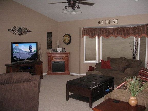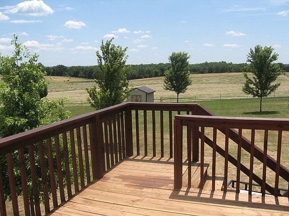 Located at end of cul-de-sac in popular Blair Oaks School District, this home has great curb appeal & offers open floor plan. Inviting covered porch to enjoy quiet neighborhood leads you into vaulted great room open to spacious eat in kitchen with huge breakfast bar. Oversized deck offers panoramic view of countryside. Master boasts 2 closets (1 walk in), jetted tub. Downstairs recently completed, accomadates game area as well as area constructed for wet bar. Wonderful room for office or exercise area as well as John Deere garage & tons of storage! Electric fireplace does not stay. *could be 5th bedroom.