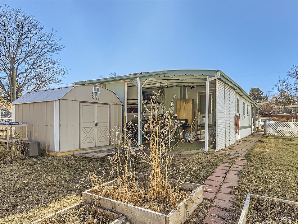 Welcome to this 2 bed 1 bath home located in Lakewood! The front has a ramp and stairs for easy access and a covered patio. The kitchen has lots of cabinets for plenty of storage and and in a beautiful two tone color. With a new stainless steel gas stove. Room for dining room table. The primary bedroom has a large closet with built in storage. The bathroom has a double vanity. The add on is great for additional storage. Fall in love with your outdoor living space with a fenced side plus huge back yard with garden boxes. The back of the home also has a covered patio area. Huge sheds for lots of storage. The neighborhood is only 1 mile south of downtown Lakewood and 10 miles west of Red Rocks Amphitheater. Quick access to five major highways, including Interstates 70 and 25, Colorado 470, and U.S. Highway 6, provide a direct route to Denver, Boulder, and the mountains.