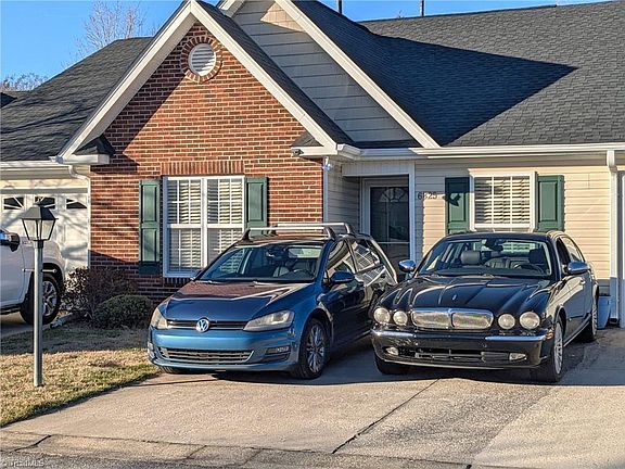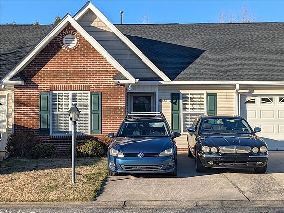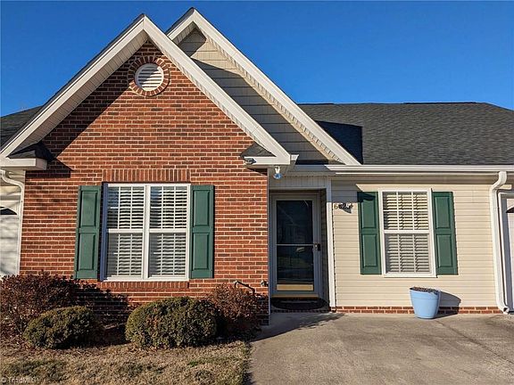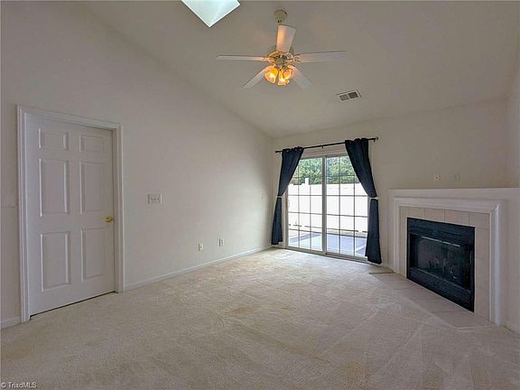 Charming in Clemmons! Delightful 2-bed, 2-bath home offers one-level living with exterior maintenance and lawncare included in the HOA! The living room features a cathedral ceiling with a skylight, a cozy fireplace, and opens to the dining area. The galley kitchen comes with a sunny breakfast nook, perfect for your morning coffee. The owner's suite offers ample space, with a large walk-in closet and attic access for additional storage. The split bedroom design gives plenty of privacy for family or roommates. Outside, the very spacious patio includes a tall privacy fence with its own tiny birdhouse and a storage room. Recent roof. Per seller, driveway can be expanded. Conveniently located near hospitals, highways, shopping, and just three miles from iconic Tanglewood Park! Don't miss your opportunity to live in this serene neighborhood!