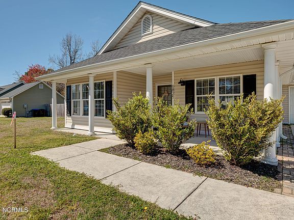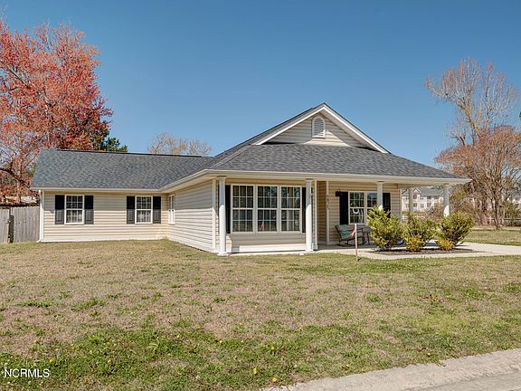 Conveniently located, this lovely 3-bedroom, 2-bathroom house sits just mere minutes from both Market Street and I-40, making it easy to get to shopping, restaurants, and even hit the highway out of town! Upon entry, you will notice the bright and inviting open floor plan, perfectly designed for easy daily flow. The kitchen makes cooking and baking a breeze with ample storage and plenty of counter space for all your kitchen appliances. With the primary bedroom located in the back of the house and the two guest bedrooms located in the front, you are guaranteed plenty of privacy. The large bathtub and double vanity located in the en suite bathroom, off the primary bedroom, ensures a perfect oasis for both preparing for the day ahead or unwinding afterwards. The built-in picnic table located on the back deck is ready and waiting for your next summer cookout, fall oyster roast or intimate coffee conversations, just add friends and family. Schedule your showing today and come see all of the beautiful little details from the gorgeous tiled backsplash to the unique wall accent, they are just too numerous to name!