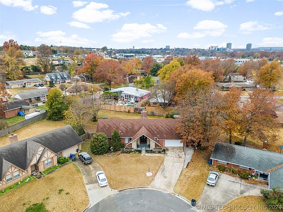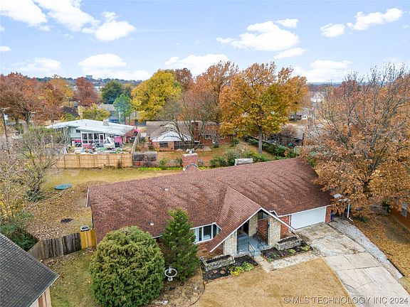 Great neighborhood, a one-level home on a large lot in a cul-de-sac. Welcoming covered front porch, spacious living area with wood beams and vaulted ceiling, wood burning fireplace surrounded by floor-to-ceiling stone wall, and built-in shelves. Lots of natural light. Formal dining area and separate office. The kitchen has granite countertops, built-in oven, lots of cupboards and cabinets, and breakfast nook for a second eating area. Home has original touches that highlight the 1962 era. Refinished hardwoods. The master bedroom has private bath with a bullnose tile countertop and an expansive vanity mirror. New garage door and opener in 2023. Extended covered patio. Huge backyard has a privacy fence and shed and is the perfect space for a big garden! Seller offering to buyer a $770 Service Agreement from American Home Shield. Great location near 61st and Sheridan, less than five minutes from the high school and 3 minutes from the local grade school. Saint Francis Hospital, LaFortune Park, golfing, tennis, shopping, and restaurants are all less than a 6-minute drive!