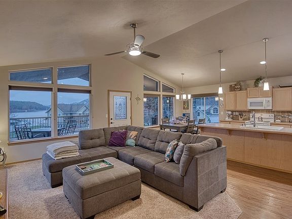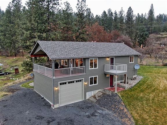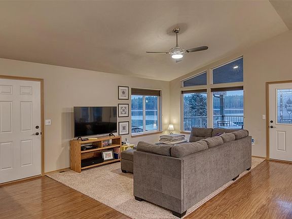 Enjoy the stunning view from this Long Lake home. This home sits across from a private dock with slip and launch ramp that is shared with 6 other homes. Exquisite custom built 3 bedroom, 2 bath home with a huge covered deck. Open concept, great room opens to large kitchen with generous sized island & pantry. Garage is 16ft wide with 10 ft. tall door. Manicured yard with fruit trees, sprinkler system, garden and storage shed. Year round living, minutes away from Airway Heights & Downtown Spokane.