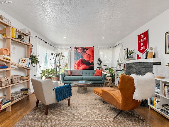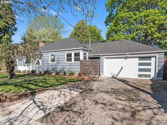 Stylish & updated mid-century modern tucked in the desirable Arbor Lodge neighborhood convenient to major employers, commuting, great restaurants, university & more. Move-in ready feat gleaming hardwoods & tastefully updated kitchen with quartz, recessed lighting & SS appliances. 2 beds on main level & 2 beds on lower + family rm. Natural light & storage galore. Private fully fenced yard w/ deck, patio & raised beds/garden space. High eff. furnace, newer electrical panel & roof, 2 car garage. [Home Energy Score = 6. HES Report at https://rpt.greenbuildingregistry.com/hes/OR10190651]