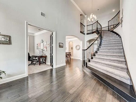 DESIRABLE NEIGHBORHOOD, STUNNING HOME! Situated on corner lot w-serene pond views.This 5 BR, 5.1 bath features a grand entry w-soaring ceilings thruout.Superb hardwoods lead you to an ofc, gorgeous din area, gourmet ktch feat quartz counters ss appl, dbl oven, huge island, gas cooktop & delightful butler pantry.The tranquil mstr suite overlooks a sitting area w-convenient access to outdoor liv space, spacious mstr BA feat an enormous closet w-built ins.The grand staircase leads to the generous sized gmrm feat a WB & media rm. Sec brms feat walkin closets. Enjoy hot TX summers in your bkyd sparkling pool & spa. Feat include 3c gar,gated drwy. Easy access to MCPh Park. CHOICE OF KISD OR GCISD SCHOOLS
