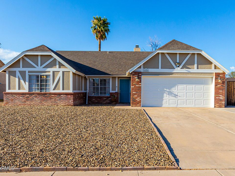 Welcome home! Beautiful brick-accented property with RV gate & parking! Light & bright interior featuring formal living & dining rooms, wood-look tile flooring, vaulted ceilings, and neutral paint throughout to add your own taste. Unwind after a busy day in the cozy family room, including a wood-burning fireplace and French doors to the backyard, merging the indoor/outdoor living areas. The galley kitchen has a tile backsplash, SS appliances, popular white cabinets w/crown moulding, granite counters, and a breakfast room for quick meals. Sizable main bedroom offers private access to the backyard and an ensuite w/under ground garden tub & a dual sink vanity. Serene backyard includes a charming patio, a fenced blue pool, artificial turf, and convenient storage. Don't miss this beauty!