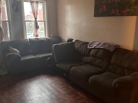 This interior rowhouse is contains two bedrooms and one full bathroom on the top floor, and a finished basement with full bathroom and laundry hookups in the basement. Street parking and parking pad available. Located on a well-kept street, this home is conveniently located off of I-95 for easy commuting, and within walking distance of the CityLink Orange bus route on Eastern Ave.
