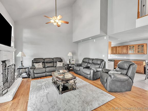 Back on the market at no fault of the seller, inspections are done! Ask for the inspection report. Adorable home in South Tulsa featuring newer paint inside and outside, new front door, new carpet, hardwoods have been refinished, new flooring in Master bathroom and a new deck. Open concept floor plan. Two living areas downstairs - each with a wood burning fireplace. The second living area has a wet bar and French doors to the deck. The main living room has soaring ceilings and lots of natural light. There is also a half bath on the first floor. The large primary bedroom is on the second floor with a large master bath which has a spa bathtub and two walk-in closets. The second floor also has two more bedrooms and a full bathroom.