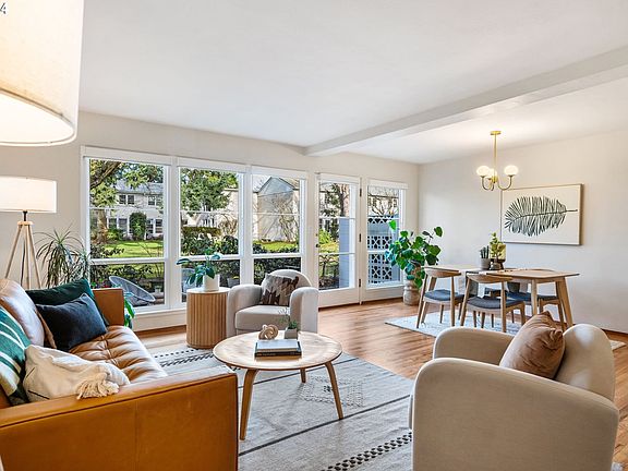 The charm and comfort of this lovely vintage townhome is wonderful but what makes living at the Binford really special is that your unit opens to a picturesque private community park, accessed only by the residents. Just beyond your own patio is a lush, manicured green, lined with paved footpaths; a place to hang out, walk the dog, play, picnic, relax, greet your neighbors. The whole property is beautifully maintained by the well run HOA. Unlike many of the homes here, this one has washer&dryer in the unit and new efficient windows. Hardwood floors, radiant heat, assigned parking space and extra storage make it cozy and practical. Enjoy this inviting, conveniently located, peaceful retreat. [Home Energy Score = 5. HES Report at https://rpt.greenbuildingregistry.com/hes/OR10167372]