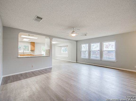 Gorgeous updated home with easy access to I-35. Spacious open floor plan. Chef's dream kitchen has granite counters, tile backsplash, stainless steel appliances, island, and jumbo walk in pantry! Large private yard for kids & dogs to play. Master features walk in closet. 2020 cosmetic updates: interior paint, floors, kitchen & light fixtures make this house shine! Meticulously maintained over the years with 2018: water softener & siding. 2017: water heater; 2014 energy efficient SEER-16 HVAC; 2008 double pane energy efficient windows with transferable warranty. Includes water softener, keyless front door lock & alarm system. No HOA. Neighborhood park, playground, & covered picnic tables down the street. Easy commute to Randolph AFB or Ft Sam Houston/BAMC.
