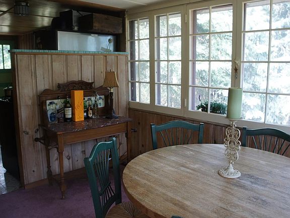 REDUCED $30K to $240K Intriguing raised ranch mountain cottage w/1216 fin. sq. ft. on 2.37 acres* 3 bdrms, 1 full bath, 10x20 newer garage* Front sunroom on main level (incl the dining area) has windows on 3 sides overlooking the view and welcoming the sun in winter. Main level also incl large 17x14 living room w/ vaulted ceiling, rock fireplace, wood floors, a small TV/den/bedroom, a spacious vintage full bath with timeless charm, and welcoming kitchen with gas range, SS fridge, cozy table by the window. Lower level has 2 sunny bedrooms w/ large windows, a small family room, walk out to patio.*Well pump, septic, roof, electric panel, and water htr have been maintained, storm/screen windows on most windows* Average gas & electric bill $113* Pleasant outdoor patios/walkways front and back, outdoor rock grill* Stand-up height storage and mechanical area accessed from lower level, not incl. in sq ft totals. Plumbing, heating, electricity are older but working well* Great value/charm*