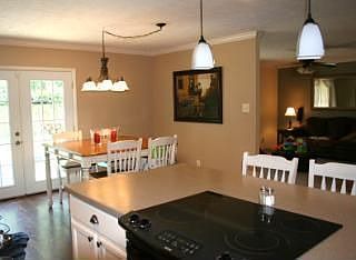 Unbelievable upgrades!! beautiful wood laminate flooring, new carpet, freshly painted, solid surface counter tops, gorgeous center island in kitchen, large pantry, high end custom cabinets, soaker tub in master bath, separate shower, customer vanity, extra large laundry room put in as a room addition, crown molding, pendant and can lighting, tile backsplash in kitchen, travertine tile in master bath. Large master closet with extensive shelving. Meticulous attention to detail throughout