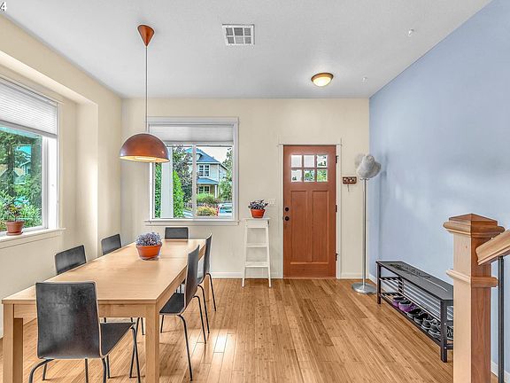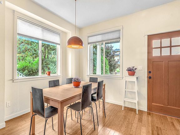 Too good to be true! Move in ready, energy efficient 3 bedroom/2.5 bath home with yard, garage and 2 covered outdoor spaces for under $450k in a walkable/bikeable SE Portland neighborhood (no HOA!). Nestled between Mt. Scott Park and the vibrant Woodstock neighborhood. A charming covered front porch welcomes you to the home. Step inside to high ceilings, an open floorplan and a spectacular light filled space. The main level features bamboo floors, dining area, living room, half bath and kitchen with granite counters, stainless appliances and a large island. Upstairs are 3 bedrooms and 2 baths including a primary suite with double vanity and step in shower. The backyard is organically gardened with wildflower and natives in place of grassy lawn. A covered back patio provides a calm space to unwind. Spacious detached garage for off street parking, storage or studio space. Just 4 blocks to Mt Scott Park and (soon to be) newly renovated Community Center with gym and pool. Woodstock Village is just down the street for shopping, library and dining. Home Energy Score = Perfect 10. Bike score = 97. Walk score = 79. [Home Energy Score = 10. HES Report at https://rpt.greenbuildingregistry.com/hes/OR10232010]