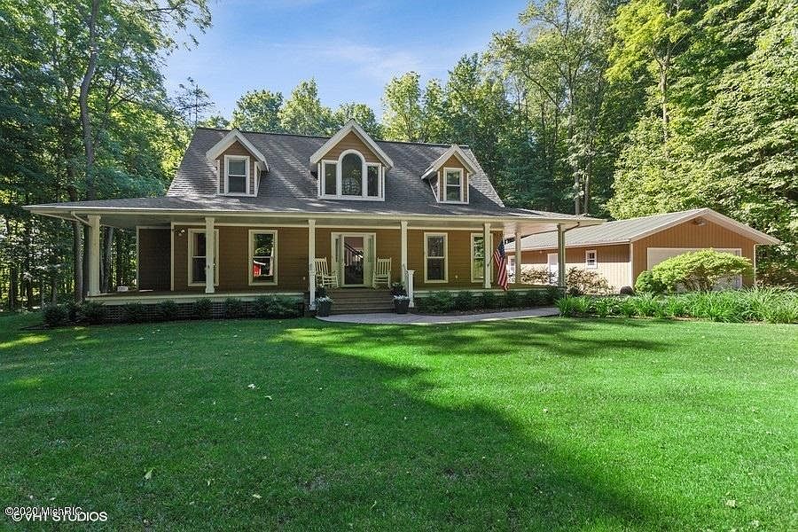 Woodlands Three Oaks country house. Situated on 15 wooded acres down the quarter mile driveway. The woods surround this secluded country estate. The recent transformation by the architect owner opened up the living space and it is now filled with light. The kitchen, equipped with Sub Zero fridge, Bosch dishwasher, and Wolf stove, opens to the living room. The new screen porch is your summer living space with spectacular views of the wooded countryside. It's a great spot for fall football parties with a TV built in above the fireplace. Trees have been cleared to make room for your new pool off the expanded deck. This year you can enjoy the hot tub and outdoor shower. You will have more than enough storage with the full basement, pole barn, two car garage and workshop.