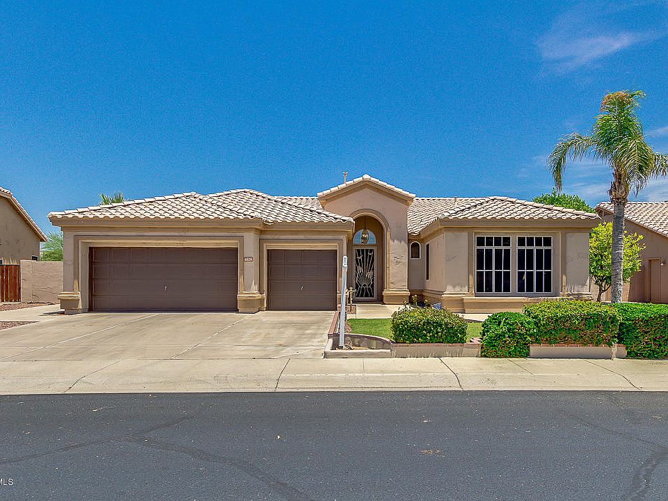 This immaculate single story, 4 bedroom/2 bath split floor plan is in desirable Hillcrest Ranch! Marble tile in all the right places, vaulted ceilings and plant niches/shelves galore. Recessed lighting, ceiling fans and upgraded fixtures throughout. Large formal window lined living room and formal dining area lets in light and views of gorgeous backyard with French Doors to covered patio. Huge eat-in kitchen with staggered cabinets, granite countertops, large island, gas top range and stainless steel appliances opens to stunning family room with built-in stone accented entertainment wall with gas fireplace. Wood flooring in front bedroom. Double sinks in hall bath. Double doors lead to oversized Master with bay window views of backyard and huge Master Bath with double sinks, separate shower and corner soaking tub with glass block window and huge walk-in closet. Large laundry room with built-in cabinets and washer and dryer included. Water softener. Beautifully landscaped front yard with grass and mature plants. Nice front patio area with security screen door. 3 car garage with storage cabinets. Entertainers delight in backyard with large grass area, raised planters, fruit trees and fenced pool with heated spa and water feature. Separate concrete slab area accessible by large gate could be sport court, storage. All of this in Hillcrest Ranch, close to shipping, dining, freeway access and great schools.