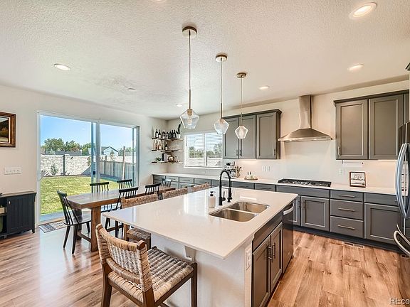 This is the one you have been waiting for. It's upgraded and immaculate. Mr. and Mrs. Meticulous live here. Outside, they added stone and an inviting front porch as well as an extended back patio that runs the length of the house. Inside, it's light, bright and open with added cabinets that run to the dining area creating awesome serving and storage options. This is truly a chef's kitchen with a gas cooktop and vented hood, wall oven, and microwave, quartz counters, stainless steel appliances, a pantry, and an island. Best of all, this wonderful space is open to the vaulted great room with a gas fireplace and a view of the spacious patio and backyard. Luxury vinyl flooring is on the entire main floor. Upstairs are four bedrooms and a family room. All bedrooms have blinds and ceiling fans, the things the builders do not add. Plus, in 2024, impact resistant shingles were added. You can be here for the holidays!
