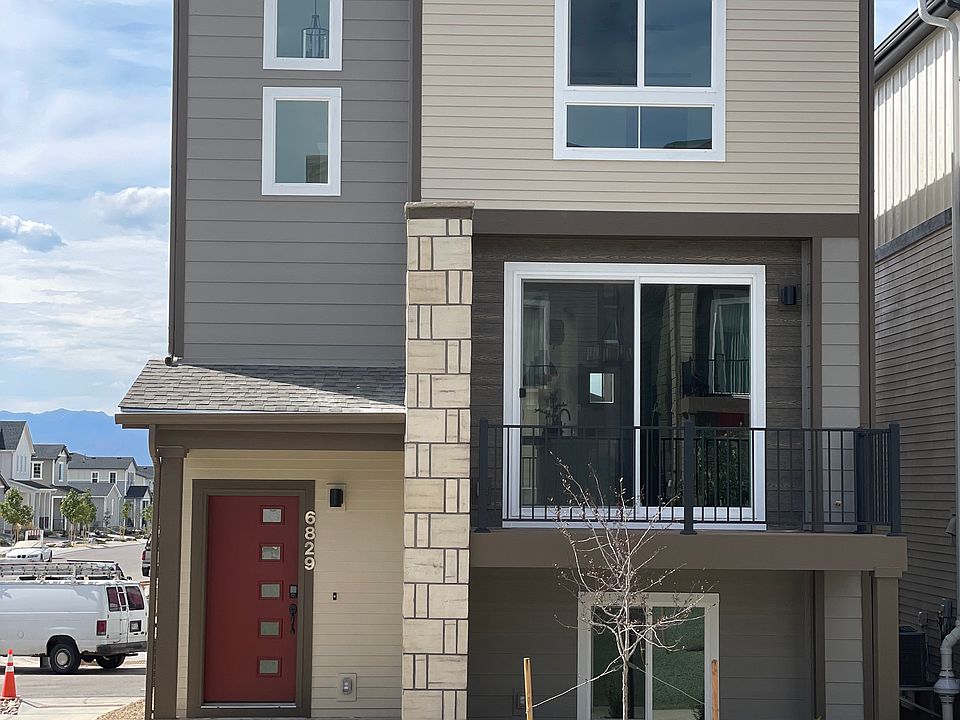 2130 total sqft. 3 beds, 2 1/2 baths. It is positioned on the end of the street. Low maintenance yard ready to rent townhome style home with two car garage. Master bedroom is on third floor with two additional rooms. Main level is open living space, kitchen, and dining room with wood floors. Basement is a terrific flex space. There are two balconies with one that has a complete view of Pikes Peak! This home is essentially located and is in the heart of town with easy access to the powers corridor. Close to two major hospitals and walking distance to park. It is also close military bases: Peterson, Schriever, Fort Carson and Air Force Academy. Tenant is responsible for utilities and standard waste removal. No smoking Must have good rental history, and proof of employment.