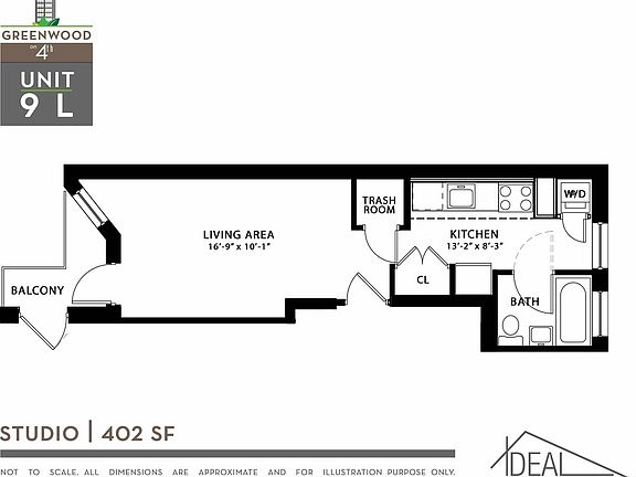 Yes that photograph IS the view from your terrace!! Take in sunsets over the Statue of Liberty or catch the East River fireworks display while cooking dinner! Plenty of space to spread out as far as Brooklyn studios go. The kitchen is equipped with all the relevant appliances including dishwasher and microwave. The in unit washer and dryer make getting the chores done a little easier. Forget about the noisy city below you. Being up on the 9th floor behind insulated windows eliminates that concern. Add the rear balcony, looking out over the beautifully serene Greenwood Cemetery. This building also offers a tenant recreation room, month-to-month storage spaces, bicycle parking, a package room and trash chutes on each floor to avoid annoying trips out into the cold. Just steps to the public transportation and all the shopping and eats of Park Slope's 5th Avenue corridor.