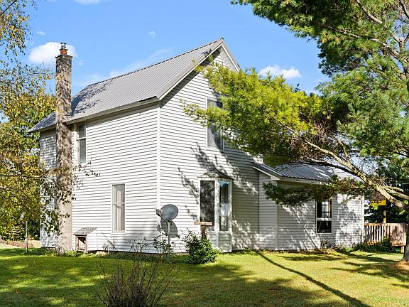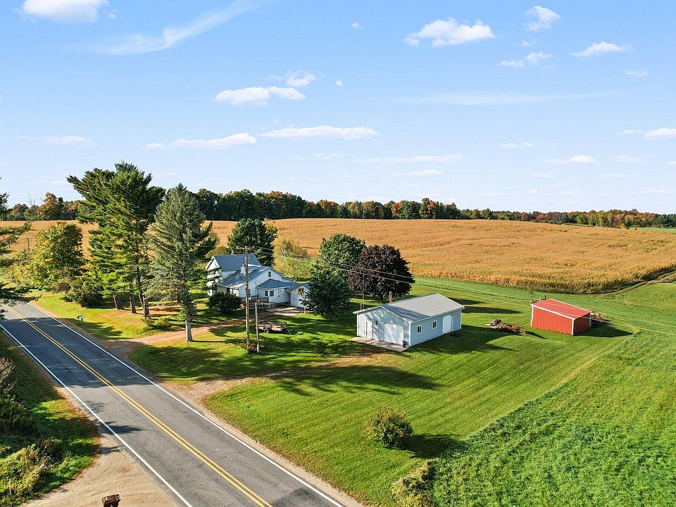 Welcome to this delightful 3 bedroom, 1.5 bathroom farmhouse just a few miles from the heart of Evart. The 5 acres offers room to grow or roam, along with an extra detached garage that has been converted into a separate workspace with concrete floors and heat. The 25 x 40 pole barn is complete with heat and a separate electrical main breaker. The home offers a spacious main floor, with a separeate mudroom, main floor laundry, and a living room to host the entire family, the 3 upstairs bedrooms boast plenty of natural light capturing the sunrise, all just awaiting your finishing touches.