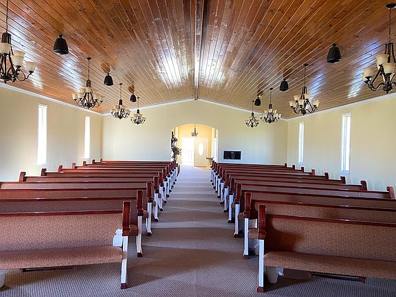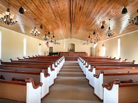 2,880 SQ FT Church building on one acre that could also be remodeled to a nice large home in a great are. Many possibilities in a beautiful area. Tax card lists property as residential. Nice wood ceiling with beautiful lighting. Currently has two restrooms with two stalls in each restroom. The building has sound system room with system, baptismal, two rooms for nursery and office or classroom and has two HVAC units. Piano and pulpit do not remain with the building.