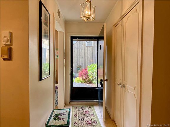 This well maintained Winthrop model has it all A level flat walk from the garage to the unit, beautiful hardwood floors, a lovely eat-in kitchen and 2 full updated bathrooms. Relax in the bright and sunny DR/LR with wood burning fireplace or step outside through the sliders onto your private patio and enjoy the shade under your brand new awning. Spacious Master bedroom has a window seat and the master bath has a brand new bathtub. There is plenty of closet space too Newly remodeled guest bath has granite counter, tile floor and a lovely tiled shower stall. This conveniently located unit is move in condition. All buyers pay a one time $1500 fee to the HMVA (If closed after November 1st equity fee is $2000.00. Central Air is not working and will convey as is.