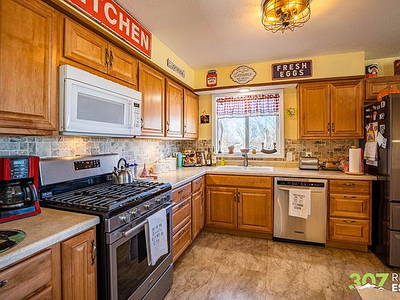 Cozy & quiet country home, close to town with few nearby neighbors! Freshly remodeled kitchen w/ SS appliances, new floors, newer roof, newer windows, large spacious family room with a pellet stove and a new Fiberon deck with Sun Sail to enjoy summer days. Oversized detached, heated garage/shop with large work area, beautifully landscaped property with a huge garden area and multiple fruit trees!