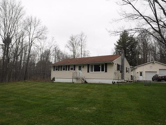 HUNTERS Paradise! Great little Ranch on 45 acres w/ updated furnace, septic, water filtration system, appliances incl stackable W/D. Enjoy watching birds from the back deck or, "putz" in your oversized, heated garage with 12'ceil/door...Large bsmt with high ceils for finishing. Updated kitchen, bath, insul windows. 27' above ground pool. Just move in & make it your own!