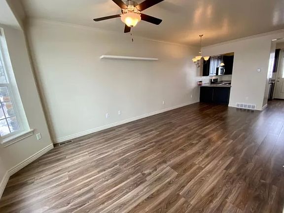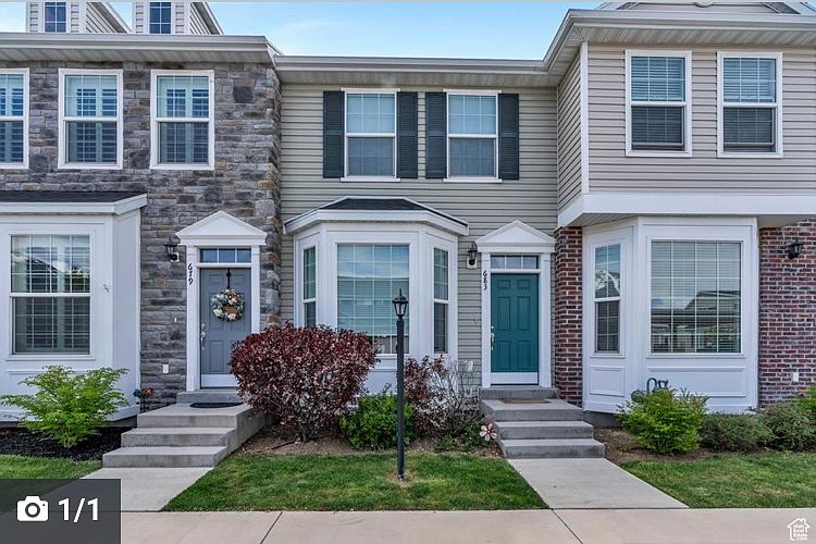 Beautiful townhouse located centrally in Salem. Only 55 minutes from SLC, and less than 20 min to Provo and Orem. This very well maintained townhome has an open layout with 9ft ceilings, 8ft doors, and laminate wood flooring. A large Bay Box window floods the interior with plenty of natural light. Upgraded matching appliances, beautiful stainless steel double oven gas range, 4 door refrigerator, dish washer, and a lovely stainless steel large basin kitchen sink. Brand new washer and dryer also included. Two bedrooms upstairs with large bathroom, and a half-bath downstairs. Fenced in patio space outback, great for outdoor gatherings, and a large grassy area behind the fence with two large playgrounds, two community gazebos and a large pavilion for community tenant use.