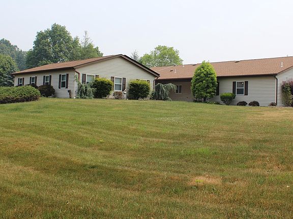 Welcome home to this impressive ranch home with so much to offer! Set on a 1 acre lot , this ranch home's yard has plenty of room for children to run and play or for the avid gardener to plant their dream garden. Car enthusiasts will love the fact that there are 2 detached garages, one being a 2 car garage and the other being a one car garage, and also an attached two car garage. All of these have epoxy coated floors for easy maintenance. The 2 car detached garage has a mini split, making it a comfortable place to work on equipment. A patio right outside of the dining room sliding glass doors is a perfect place to have parties and also access the large, indoor, heated, chlorine, cement pool. This pool is gorgeous and will provide endless fun for all family activities. The pool room has a full size bathroom and utility room, all tiled in ceramic tile. This room is attached to the home, and it leads into the home office, then into the laundry room, and flows right into the kitchen, all with vinyl tiled floors. The dining, living room, foyer and hallways are all hard wood flooring. The primary bedroom has its own full bathroom, walk in closet and access to the patio. The two secondary bedrooms share a full bathroom. This ranch home has a security system and is handicap accessible with spacious hallways and wider doors.