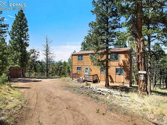 3 bedroom/2 bath home in Colorado Mountain Estates, a wonderful community with county maintained roads. Colorado Mountain Estates is conveniently located, with nearby amenities in Florissant and Woodland Park. The subdivision is also within a reasonable commute to Colorado Springs, making it an ideal location for those seeking a peaceful mountain retreat without sacrificing access to city conveniences. Home has front and rear decks, large shed, skylights and wood accents. In addition to the well, 2 - 500 gallon cisterns provide back up water. Priced to reflect need for some improvements. Carpet needs clean or replacement. Some windows have seal broken. Could be great opportunity for 1st time home buyer or use as a 2nd home in the mountains. Minutes from Florissant Fossil Beds National Monument, Cripple Creek and 11 Mile Reservoir, recreational opportunities are abundant. Come see it today.