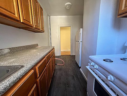 Large apartment with separate sit in kitchen ! Rent includes heat & water 3 blocks away from the train !! The building is located a few blocks away from street where you have tons of options from shopping, to eating, or you can wine and dine at local restaurants, and bars Small pets ok , live in super . Must have good credit .