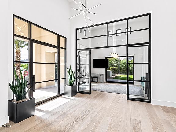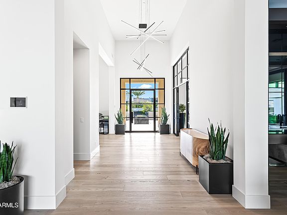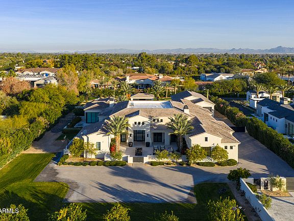 Discover resort-style living in this privately gated Paradise Valley estate, perfectly positioned to capture striking Mummy Mountain views. A lush, welcoming front courtyard sets the tone with a firepit, fountain, citrus trees, and an expansive lawn. Inside, wood-paneled ceilings and white oak flooring lead to a private office and inviting family room. The open-concept great room highlights a full wet bar, temperature-controlled wine cellar, and a wall of sliders that open seamlessly to the Arizona room with a dramatic dual indoor/outdoor fireplace. The chef's kitchen is the heart of the home, showcasing dual islands, a gas range, high-end appliances, a butler's pantry, walk-in pantry, and a charming breakfast nook. A split floor plan enhances privacy, and the luxurious primary suite offers its own fireplace and sliders to a secluded courtyard with firepit. The spa-inspired bath features dual vanities, dual walk-in closets, dual private toilets, an oversized shower, and a soaking tub. Guests will appreciate the fully appointed casita, complete with kitchen, walk-in closet, and washer/dryer. Car enthusiasts will love the 4-car garage plus an additional 2k sqft versatile bonus space with built-in storage, wet bar, refrigerator, TV area, gym, sauna, cold plunge, direct access to the full outdoor pool bath, and RV gate and garage door for additional vehicle storage option. The backyard is an entertainer's dream, offering a heated saltwater pool with water and jet features, spa, an outdoor kitchen with BBQ, fridge, and smoker, along with misters and heaters for year-round enjoyment. A TV-equipped ramada, multiple fire pits, putting green, and charming chicken coop complete the experience. This smart home offers automated control of security, lighting, music, shades, pool, and misters. Located moments from Paradise Valley's premier resorts, world-class golf, fine dining, and upscale shopping, this exceptional estate delivers the ultimate blend of luxury, comfort, and Arizona indoor/outdoor living.
