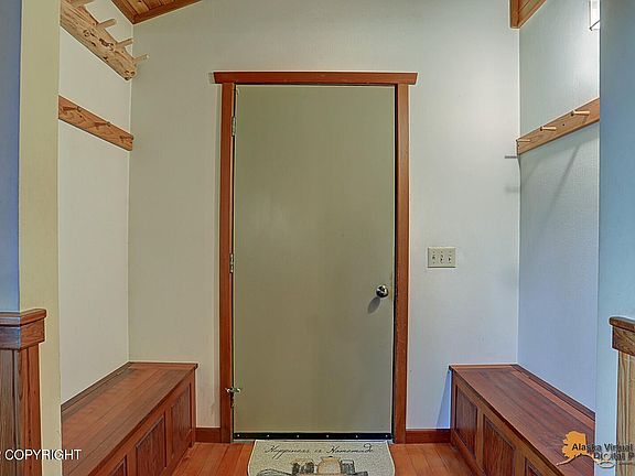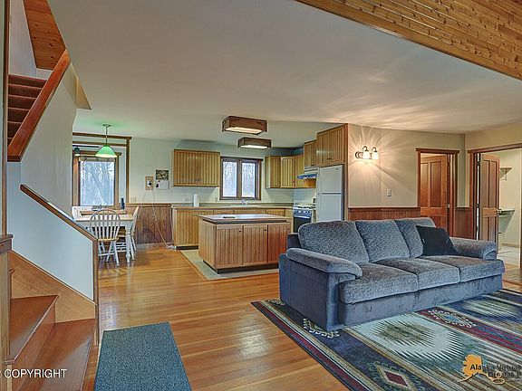 Gorgeous one of a kind craftsman home built on private 3.73 acre lot just north of Palmer. Private, gated driveway, sauna, root cellar, 2 detached shops), amazing landscaping & trees. The wood floors in home are from Peter Pan Cannery in Bristol Bay, butcher block table made out of a mining cart from Jonesville, a mast from a Bristol Bay Sail Boat in kitchen & much more! Don't miss this one!