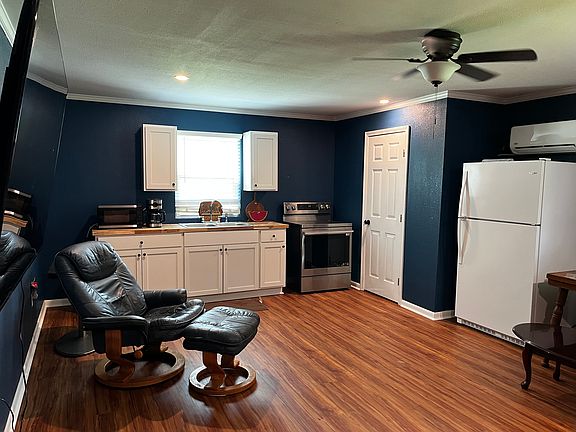 2 Bedroom/1 bath on 3/4 acre for rent. The home can come partially furnished with the couch and tv in the living room and one of the bedrooms comes with the bed. The other bedroom will be unfurnished. Lots and lots of storage available on the property - there is an open loft upstairs above the apartment and approximately 800 sf of garage space. The living room and the 2 rooms each have their own ductless air conditioner/heater so everyone can stay comfortable at their preferred temperature. The kitchen has a microwave, refrigerator, and a stove with air fryer. The bathroom is separate from the rest of the living space but is covered and easily accessible. Washer and dryer is also on the property. There is a pond behind the property that is fenced off but tenant is allowed to fish in if they want to. Rent is $1400/mo with $1000 deposit required. Rent includes water and garbage. Tenant is responsible for electric and their own cable/internet. Background check, credit check, and references are required. Commercial option is a possibility for an additional fee, but does not include utilities. If interested in the property, please call Roger at the number listed below. Owner pays for water and garbage, tenant responsible for electricity, cable/internet, and renter's insurance.
