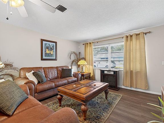 Discover the charm of Vendome Village, a sought-after 55+ community where homes rarely become available. This inviting condo offers 2 true bedrooms, 2 full bathrooms, and an attached one-car garage. Bright and welcoming, the residence enjoys abundant natural light and a tranquil rear patio with a private, peaceful backdrop. Inside, you’ll find luxury vinyl flooring in the living and bedroom areas and low-maintenance tile in the kitchen, bathrooms and bonus room/den. The open kitchen includes a breakfast bar and a window above the sink that overlooks the greenery A flexible bonus room sits just off the kitchen, ideal for a home office, craft space, den, or expanded dining area. The primary bedroom includes a generous walk-in closet, and additional storage can be found inside the home plus shelving in the garage. This home is located just 300’ from Vendome Village’s great amenities including a community pool, clubhouse, and shuffleboard courts. The location is central to shopping, major roadways, bus routes, and just minutes from the beautiful Gulf beaches. Make an appointment to see this lovely, move-in-ready home!