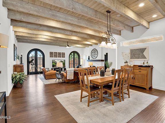 Private Spanish Colonial retreat in the prestigious gated community of Villa Valencia. This exquisitely remodeled three bed, three bath home spans 2,512 sq. ft. of refined living. The Great Room impresses w/ soaring wood-beamed ceilings & a wood-burning fireplace, while the gourmet kitchen features high ceilings, custom cabinetry, granite counters, French doors, & a hood imported from Italy. The primary suite offers custom accessible closets & a spa-like bath complete w/ soaking tub. Wide plank hardwood floors, Milgard windows, & Restoration Hardware finishes add timeless charm. Residents enjoy tennis, pickleball, basketball, a pool, & a dog park. Close to hiking/ biking trails, the canal, w/ the Biltmore, Scottsdale, local restaurants, downtown Phoenix, & Sky Harbor just minutes away.