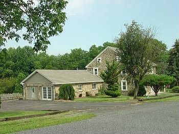 Overlooking a gorgeous stocked pond in a priceless setting, this stone farm house sets on over 8 acres of land. The large home features a grand living room with fireplace, large formal dining room, eat-in kitchen with windows overlooking the pond and view, and a first floor family room (or possible in-law apartment with full bath). You'll also discover a hot tub room and can walk out onto the covered deck to overlook the pond and landscaping. Upstairs, you'll find plank floors and even an open beamed ceiling. The Property includes 2 barns and a buildable lot of 1.2 acres. Updates in the home include a recent 40 year shingle roof, replaced septic, radon system in place, newer furnace & all maintenance free exterior. Not far from I-78 and Allentown, PA. Home is ready for an immediate sale, owners have relocated. *Separate deeded 1.2096 acre lot is included in sale price and total acreage of 8.220 acres. Tax ID# 555152137439-1. Approx total tax for both parcels $6,500/year.**