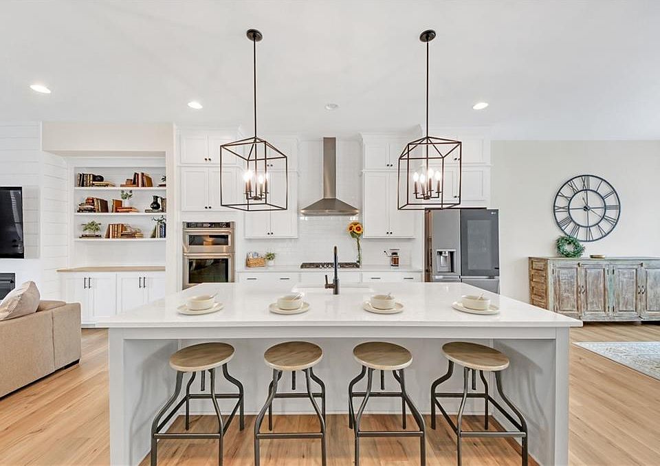 - Features: Cabinets White, Eat-in Kitchen, Kitchen Island, Pantry Walk-In, Stone Counters, View to Family Room
