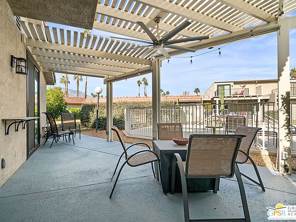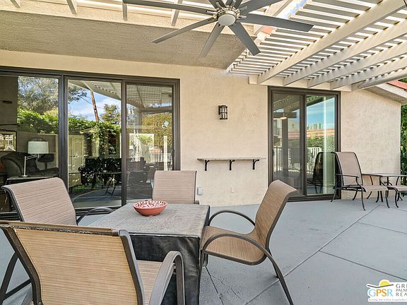 Nestled in the heart of Cathedral Canyon Country Club, this stunning property presents a unique blend of luxury and serenity. Having undergone a recent remodel, it features a fully furnished interior, two bedrooms, two bathrooms, and an attached two-car garage. Residents can unwind at the adjacent community pool or explore the nearby golf and tennis facilities, all while taking in the breathtaking mountain views. The expansive patio boasts a large alumawood pergola and a mature ficus hedge, providing a secluded retreat. Two primary suites offer en-suite bathrooms with spacious walk-in showers. Conveniently located near Palm Springs Airport, downtown Palm Springs, and other local attractions. Offered turnkey with 1 month minimum lease, longer stays welcome and negotiable - $2,800 is effective May 1 and summer of 2026. Please inquire about summer/fall 2026 rate or 6 - 12 months lease.