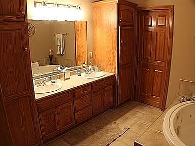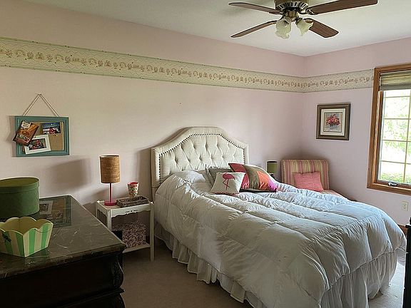 STYLISH & INVITING! Impressive custom ranch on a full, daylight basement. Split bedroom floor plan. Two fireplaces. The lower level has a 7 seat wet bar, rec room, family/theater room, fireplace, office, full bath, storage and five large daylight windows! The three car garage can actually hold four cars, is wired for a potential heater, has a soft water spicket and storage cabinets and shelves. The main level has lovely hardwood floors in the foyer, hall, great room, dining room and kitchen. Spacious great room with a gas fireplace. Both fireplaces have an electrical outlet on the mantles. The master bedroom has crown molding and a treyed ceiling with rope lighting. The master bath has a jet tub, shower and walk-in closet. The cabinets are wired for rope lighting. You will love the kitchen with a breakfast bar and built-in desk. The kitchen is wired for a TV and has rope lighting under the cabinets, and there is extra storage behind the sink. The laundry room has a custom 3-drawer laundry bin with storage, dryer rod and shelf. This home is perfect for formal or casual entertaining. There is a large outdoor deck and the waterspouts are all underground. Battery backup sump pump on the lower level. New furnace 2019 and new hot water heater 2021. Yard is fenced. Buyer's realtor welcome at 3%. This home is a must see with too many special features to mention!