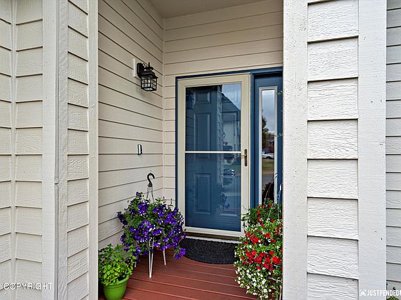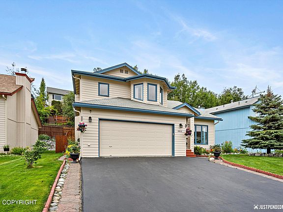 This home is a must see. Meticulously maintained in and outside. Vaulted ceilings, Loft, family room, Hard wood Bamboo flooring throughout. Quartz counter tops in kitchen and features electric downdraft range cooktop. Master bedroom has Bay window with wood trim and mountain views. Park and bike trails at the end of the street. per Apple Maps under 15 minutes to JBER, hospitals, UAA and Shopping.