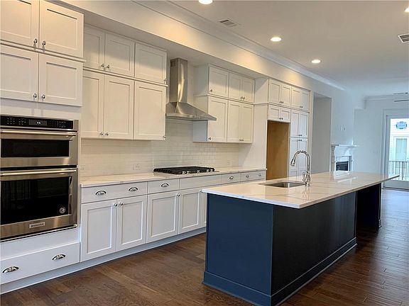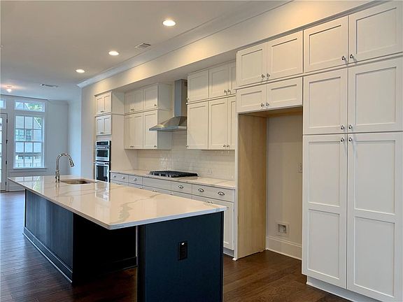 - Kitchen Features: Breakfast Bar, Pantry, View to Family Room, Stone Counters, Kitchen Island, Cabinets White