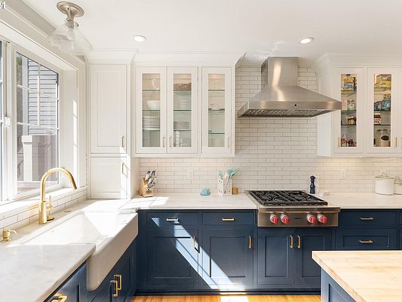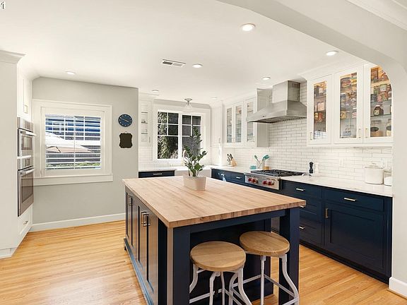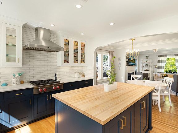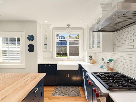 Renovation at its finest! Absolutely stunning at every turn with quality and craftsmanship throughout.Taken down to the studs & rebuilt. The kitchen is perfection with navy blue cabinets, gold fixtures, generously sized island and flow to the dining and living rooms.Elegant marble counters paired with the rustic butcher block on the island provide substance and style.The primary bed is up w/ marble tile shower, WI closet+double sink vanity.Perfect sized yard Southwest exposure=light/bright [Home Energy Score = 7. HES Report at https://rpt.greenbuildingregistry.com/hes/OR10191149]