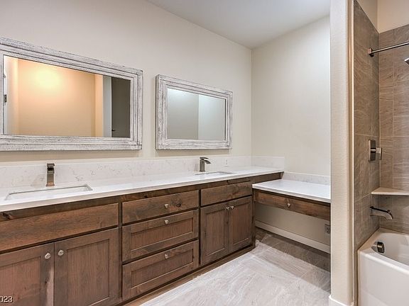 YOUR DREAM HOME AWAITS! This brand new home offers unbelievable views of Mt Charleston & Shadow Mountain, large bedrooms, dual custom pantries that wrap around the fridge, a gorgeous kitchen with brand new appliances, quartzite countertops, a covered rear patio with custom paver work & a beautiful floorplan!