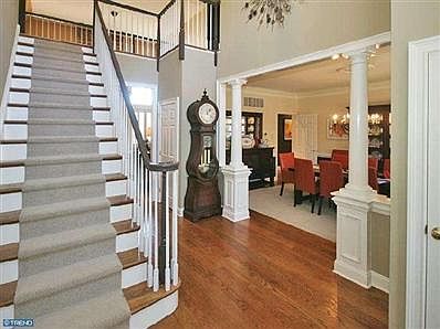 IMPECCABLE high style residence on over 3 acres in Solebury! Just off of River Road walkable to Downtown New Hope this young farmhouse reproduction offers a serene and hospitable lifestyle. Perched on high ground and approached by a long drive the setting is semi-private but not secluded. Enter from the expansive front porch into the two-story entry hall with home office/library to the left and formal dining to the right. Beyond is the Great Room with dramatic fireplace flanked by tall windows bathing both the first and second floors with natural light. The large eat-in kitchen has abundant storage and custom cabinets island sink/workstation/breakfast bar and provides access to the rear paver patio. A large main-floor master bedroom suite features walk-in closet luxurious bath and outside access to the rear patio as well. A door into the office from the master could make this wing the perfect in-law suite since there is a second oversized suite with bath on the second floor. Access the upstairs via front and rear stairs where a ""bridge"" overlooks the family room and front entry. The second story reveals a large 2nd bedroom suite with full bath and sitting area walk-in attic 3rd and 4th bedrooms and hall bath with double sinks. Partially finished basement is currently used as a home gym. The rear yard has a newly constructed patio with seating wall and large fenced in area. Main-floor laundry new driveway many upgrades and amenities this custom home is immaculate and move-in ready! First floor living in-law suite opportunities 3-car garage easily commutable to Princeton NYC and Philadelphia.